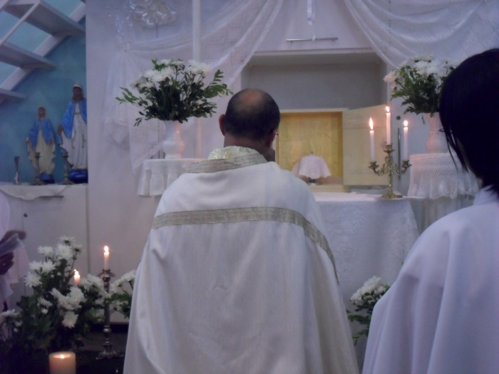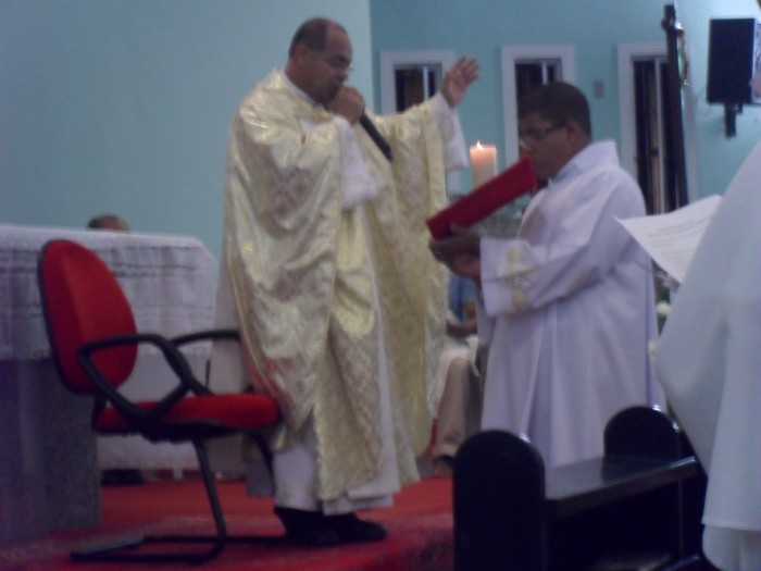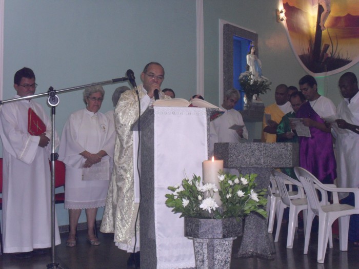 Na Celebração o Padre Romildo,exortou-nos a colocar a Eucaristia como centro de nossas vidas e amá-la ,pois é Ela o grande mistério de nossa Fé.