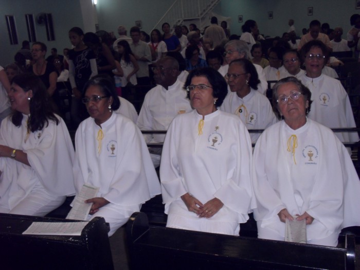 Aqui na Paróquia, a Celebração teve início às 19:30 e foi marcada também pela renovação dos votos,dos Ministros Extraordinários da Comunhão.
